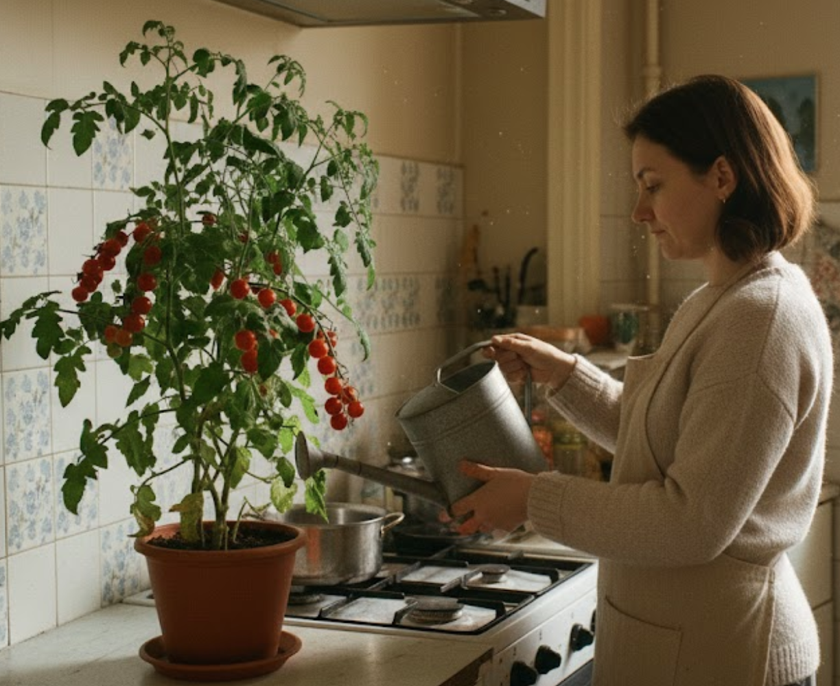 Чесно, я сміялася з того, що боялася, ніби це буде «робота на півдня». Насправді це та ж сама кімнатна квітка, тільки замість листя ти збираєш помідори.